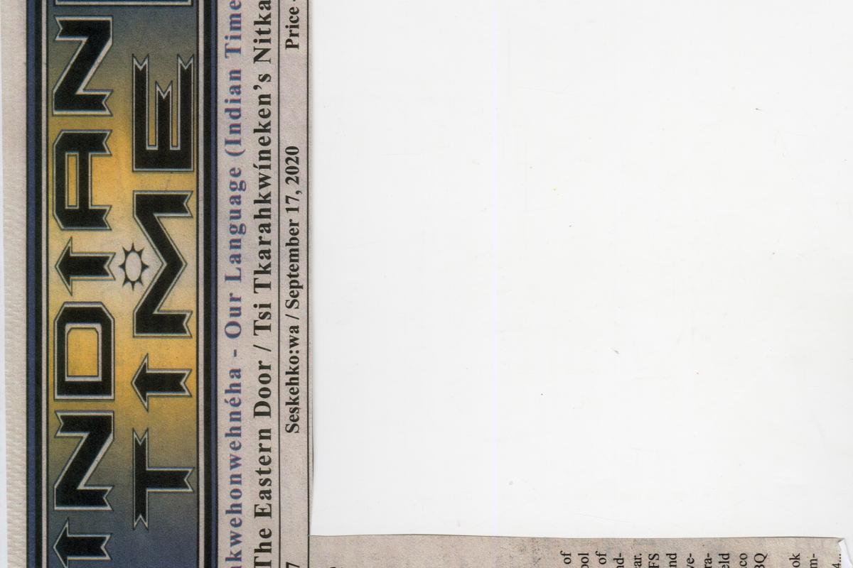 September 17, 2020 Indian Time newspaper article which includes seven photos from the Akwesasne Freedom School virtual auction.