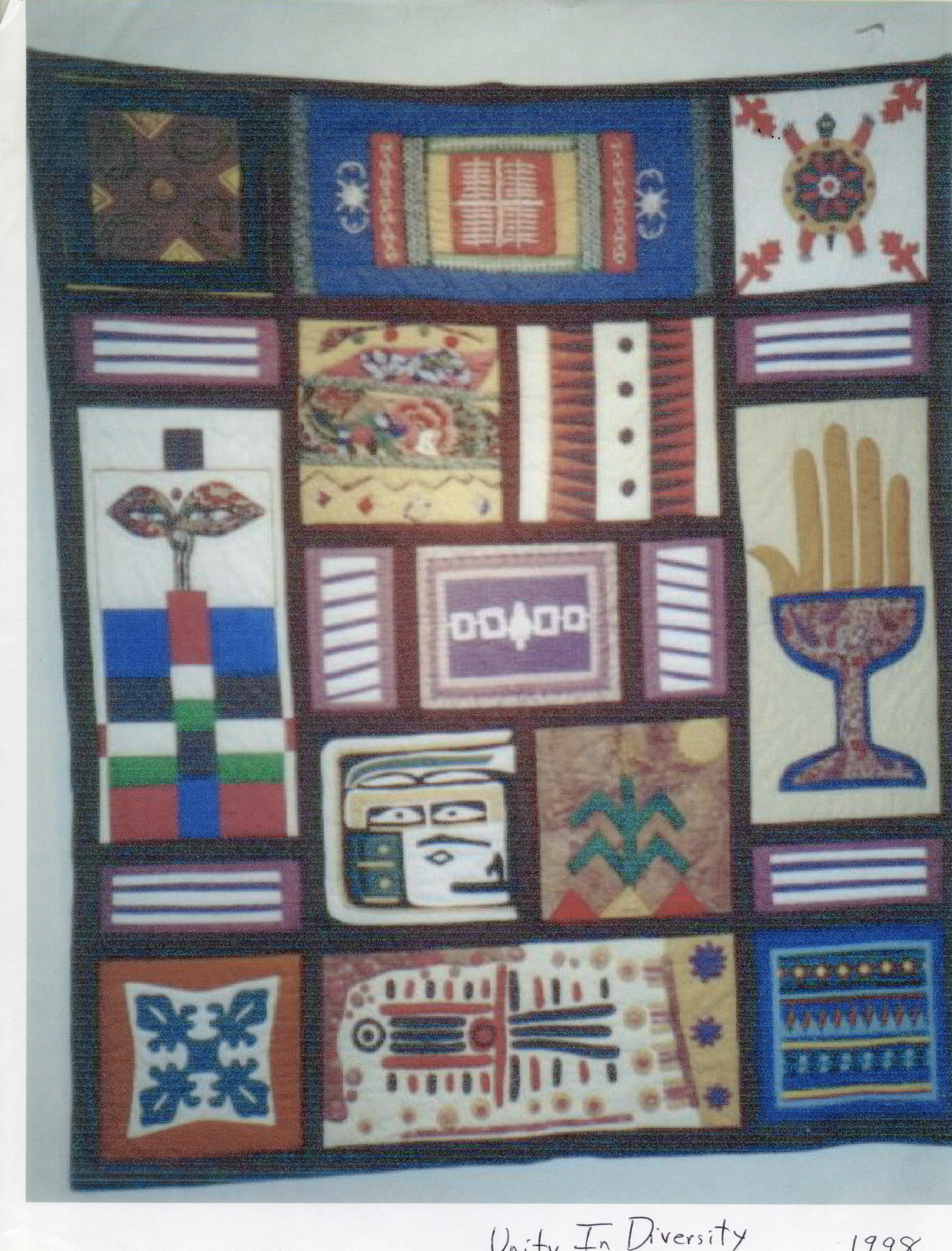 1998 Piecemaker's Quilt: "Unity in Diversity: Symbols of Indigenous Peoples of the World"